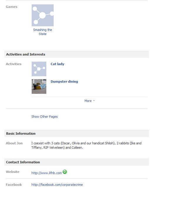 I’m scanning through this report and I see on page 11 it says Jon and his friends stole some rabbits (from an organization that appears to use them for slaughter/cooking classes) and they “left 10 1-day old babies behind without their nursing mothers.” Page 12 says they started dying 3 hours later, and that Jon admitted on Facebook that he realized the babies would die and was just glad that “baby rabbits aren’t going to be raised for slaughter for your sadistic blood lust!”