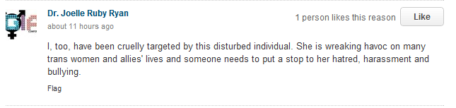 The trans activists seem to be missing a CRITICAL fact in why I specifically call out Joelle’s bullshit – she is a teacher of women’s studies. She isn’t a clerk in a grocery store, or an accounting prof – she teaches women’s studies. HELLO FOLKS – SHE IS USING HER POSITION OF AUTHORITY TO PUSH HER AGENDA ON STUDENTS – AND APPARENTLY GIVING THEM BAD GRADES WHEN THEY DISAGREE WITH HER ANALYSIS. And the sharing student work on Facebook? Indefensible.