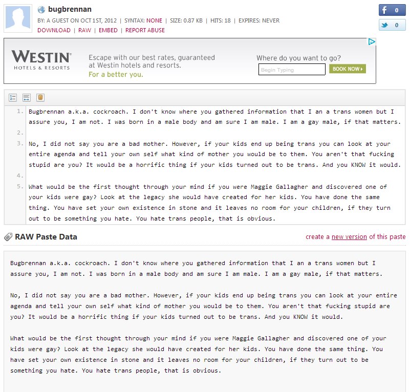 An accusation made with astonishing regularity against Radical Feminists and Pro-Feminist Men who object to Gender Identity is that we are “just like Fred Phelps” or Maggie Gallagher. That is, that our Feminist objections to Gender Identity are rooted in some conservative religious bigotry.
