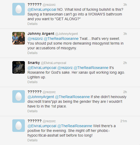 Just saw Vast Left call her ‘transphobic Roseanne’ in my Facebook feed. The word is travelling faster than people’s ability to read the original exchange.