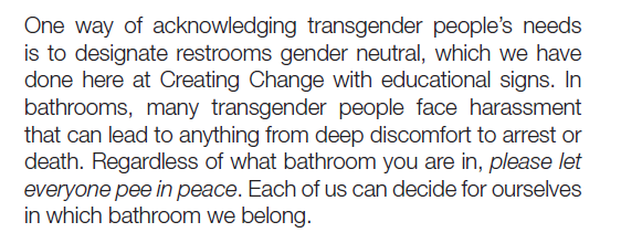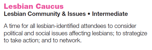 I HAD suggestions for taking back space at Creating Change but it was the will of the Facebook group to enforce boundaries by policing women. You can’t be visible if you don’t show up – and the Lesbian Caucus failed in its mission. Creating Change won’t change unless YOU change it.
