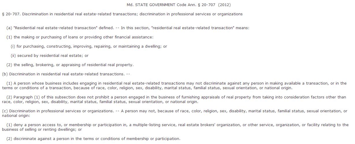 The Maryland Commission on Civil Rights, the state agency charged with enforcing the Article, has taken cases from transgender people based on the ban on sex discrimination.