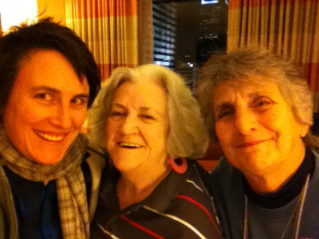 I am embarrassed also to admit that I haven’t spent a lot of time listening to Women’s Music. This has everything to do with my internalized misogyny (the idea that “Women’s Music” isn’t good, which is horseshit). However, I know Alix Dobkin as a fierce Radical Feminist and Lesbian who tells the truth and was double starstruck to be lucky enough to dine with Sally and Alix.
