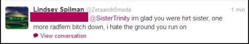 Enjoy this audio from Lindsay Spilman, a heterosexual woman who suffers from gender identity disorder (by her own statements) and who sexually harasses women on social media.