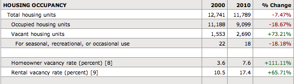 US Census Data, Population Trends, 200 to 2010. The significant decrease in population stems from people losing their homes in the foreclosure crisis.